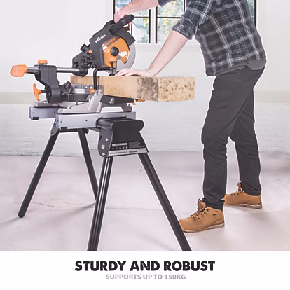 Evolutioni mitmekülgne ja kaasaskantav nurk- ja kaldsae alus on ideaalne nii koduseks kasutamiseks, töökojas kui ka objektil. Kaaludes vaid 12,5 kg on seda lihtne ühe käega kanda ning tänu kiirkinnitusega kokkupandavatele jalgadele saab aluse kokku voltida kiirelt.