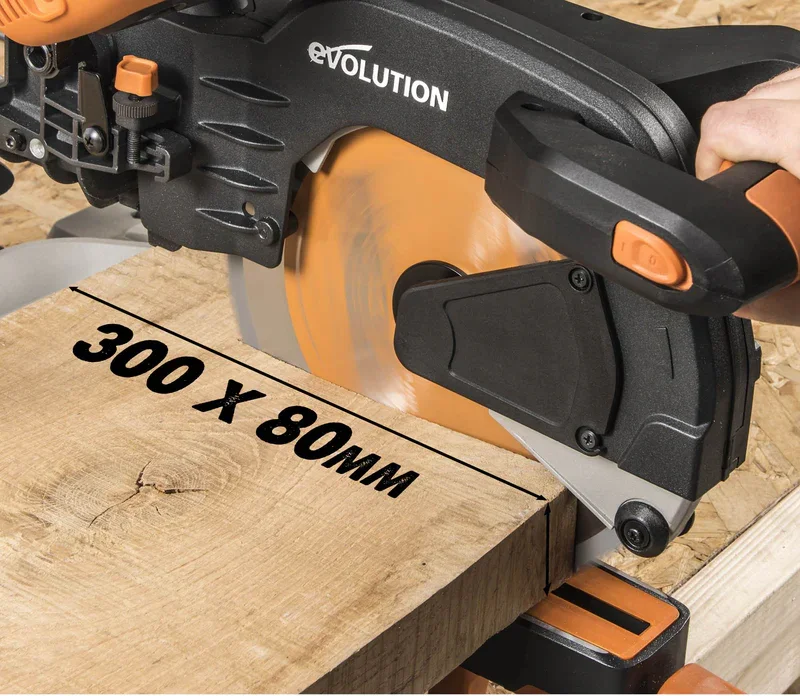 Evolution R255SMS+ nurgasaag on loodud täpseks rist-, kalde-, nurga- ja soontelõikeks puidus, puidukomposiitides, plastikus ja metallis. Võimsat 2000 W mootorit (240V) täiendab 255 mm volframkarbiidiga TCT Multi Material ketas. Saag pakub 300 × 80 mm ristlõikevõimekust ning lõike täpsust ±0,5° piires, 0°–45° kaldega (bevel tilt) ja 50°–50° nurkadega (mitre).
